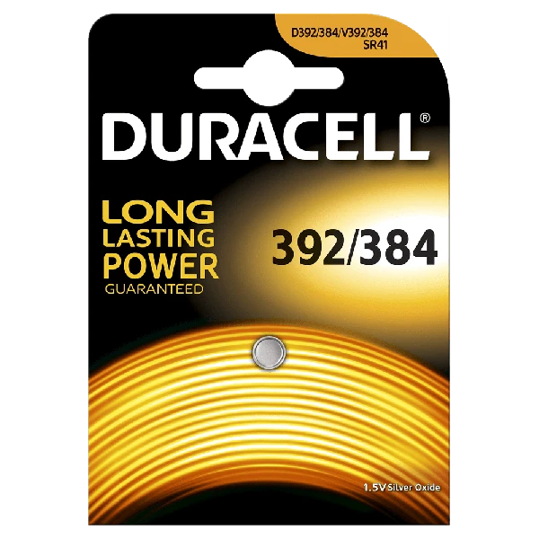 De Duracell 392/384 Zilveroxyde knoopcel batterij wordt vaak gebruikt in horloges, rekenmachines, afstand bediening, autoalarm, weegschaal, speelgoed of een fotocamera. De batterij laat apparaten lang optimaal presteren. Daarnaast zit er een combinatie van koper, tin, staal en nikkel in de batterijen. Dit zorgt er voor een beter contact en heb je minder kans op lekkages. Het voltage bedraagt 1,5 volt.